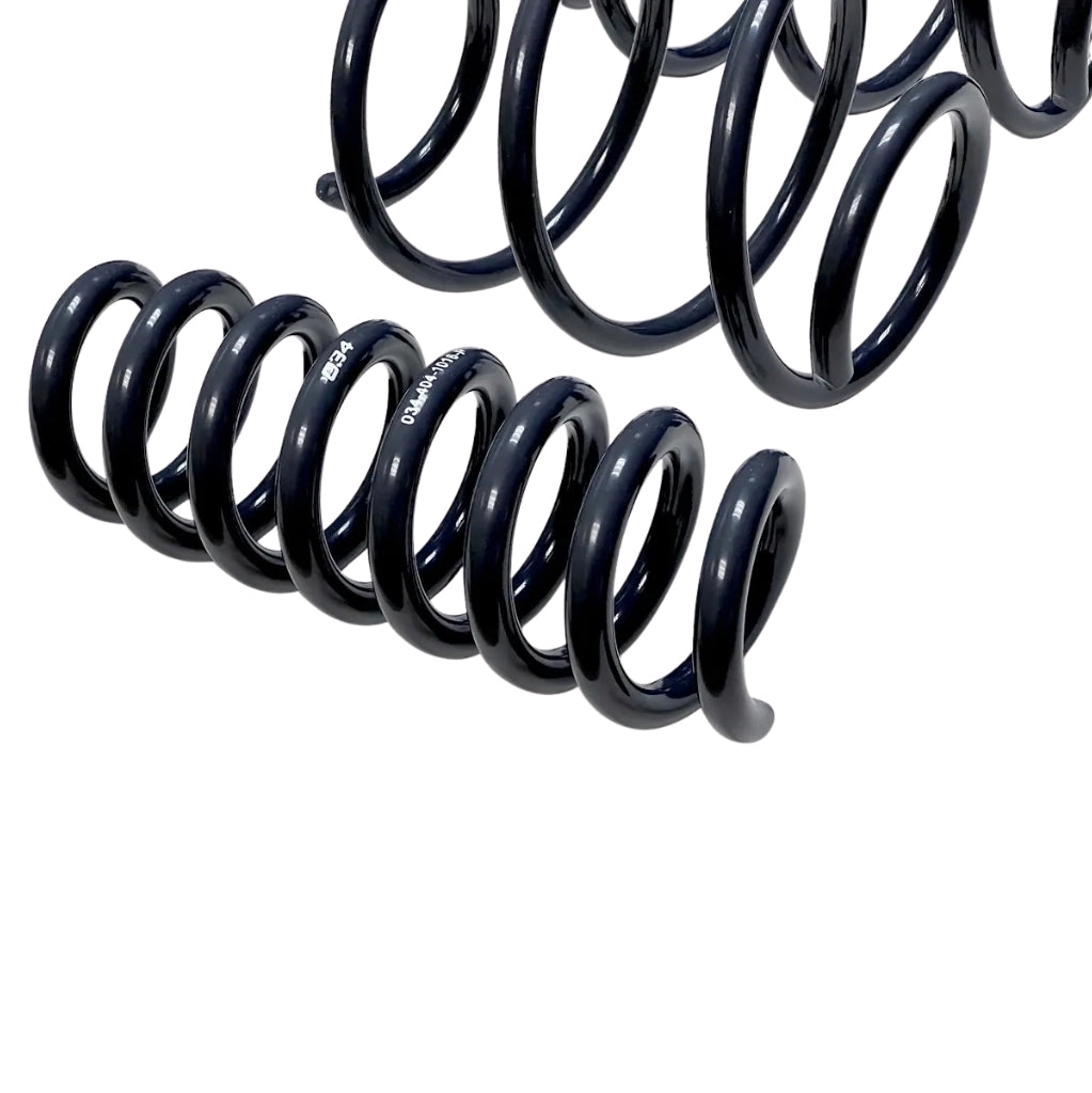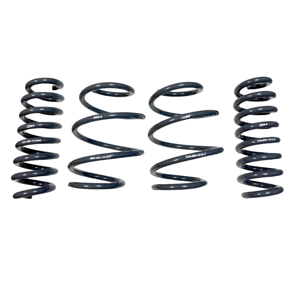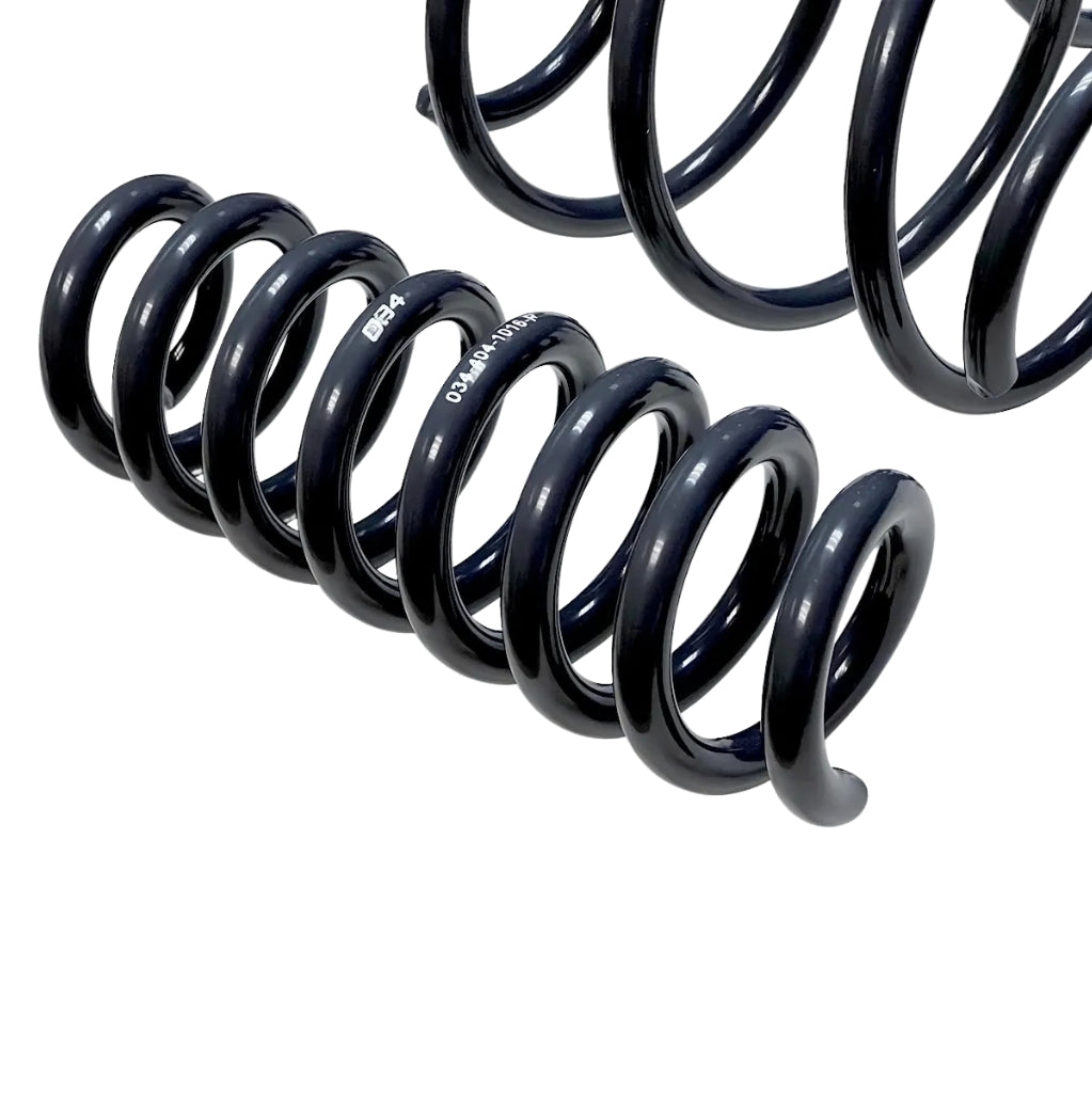 034 Motorsport Dynamic+ Sprężyny obniżające są idealnym rozwiązaniem dla Kierowcy BMW F3X Chcesz obniżyć swój pojazd i poprawić komfort jazdy bez utraty komfortu? Te sprężyny zostały zaprojektowane tak, aby bezproblemowo współpracować zarówno z fabrycznymi amortyzatorami adaptacyjnymi, jak i standardowymi, zapewniając komfortową jazdę na co dzień, a jednocześnie zachowując responsywność w warunkach sportowych. Obniżając je o około 19 mm (3/4 cala) z przodu i 9 mm (3/8 cala) z tyłu, sprężyny te nadają dynamiczną postawę i optymalizują skok kół, poprawiając wygląd Twojego pojazdu BMW Wzmocnione. Po szeroko zakrojonych testach na drodze i torze, 034 Motorsport nie stwierdził negatywnego wpływu na żywotność amortyzatorów ani jakość jazdy. Sprężyny są produkowane w USA w ISO Fabryka posiadająca certyfikat 9001, co gwarantuje najwyższą jakość i niezawodność Dynamic+ Sprężyny obniżające Nie tylko poprawiają prowadzenie i dynamikę podwozia, ale także zmniejszają przechyły nadwozia i podsterowność. Pomimo zwiększonej sztywności, zapewniają niski poziom hałasu, wibracji i szorstkości w kabinie, co korzystnie wpływa na komfort jazdy. Aby uzyskać dodatkowe tłumienie, Dynamic+ spiralne tuleje sprężynowe Dostępne są również tłumiki hałasu między cewkami, które zapewniają optymalne wrażenia z jazdy.