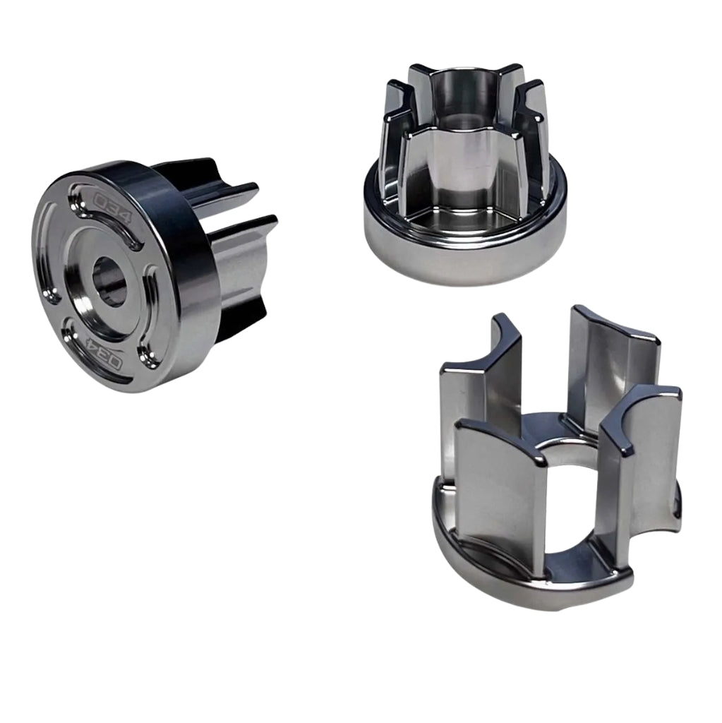 Ten 034 Zestaw aluminiowych wstawek mocujących przedni dyferencjał Motorsport Billet Do Audi R8 Generacji 1 i Generacji 1.5 Redukuje ruch w fabrycznych mocowaniach mechanizmu różnicowego, redukując luz i zniekształcenia układu napędowego oraz poprawiając responsywność przedniego zawieszenia i mechanizmu różnicowego. Wypełniając niewielkie szczeliny w fabrycznych mocowaniach, ten zestaw wkładek eliminuje związane z tym ruchy układu napędowego, zapewniając bardziej komfortowe i płynne prowadzenie, zwłaszcza podczas dodawania mocy podczas zmiany biegów. Te aluminiowe elementy nie ulegają zużyciu ani zapychaniu z upływem czasu, zapewniając trwałą poprawę osiągów. Wskaźnik NVH (hałas, wibracje, szorstkość) to miara natężenia dźwięku, wibracji i szorstkości przenoszonej do wnętrza pojazdu. Na podstawie opinii użytkowników, 034 Sporty motorowe Wkładki mocowania mechanizmu różnicowego zapewniają niski poziom hałasu, drgań i wibracji (NVH) w kabinie. Poziom hałasu, drgań i wibracji (NVH) jest subiektywny, dlatego niektórzy użytkownicy mogą odczuwać hałas wyższy lub niższy niż w naszej ocenie. Jeśli poziom hałasu, drgań i wibracji (NVH) jest wyższy niż deklarowany w przypadku tego produktu, prosimy o ocenę instalacji, aby upewnić się, że komponenty są zamontowane prawidłowo i skontaktowanie się z nami drogą mailową wsparcie techniczne@034motorsport.com Aby uzyskać dalszą pomoc Audi R8 Generacji 1 i Generacji 1.5 Wykorzystuje gumowe mocowania przedniego mechanizmu różnicowego, które odkształcają się pod obciążeniem, co powoduje opóźnienie w przekazywaniu mocy na przednie koła i nieoptymalne prowadzenie podczas zmiany biegów i przyspieszania. Te precyzyjnie obrobione aluminiowe wkładki zostały zaprojektowane tak, aby wypełnić luki w fabrycznych mocowaniach mechanizmu różnicowego i ograniczyć ruch mechanizmu różnicowego pod obciążeniem, bez pogorszenia jakości jazdy ani wprowadzania dodatkowego hałasu, wibracji lub szorstkości do kabiny. Rezultatem jest bardziej wyrafinowane i płynne prowadzenie.