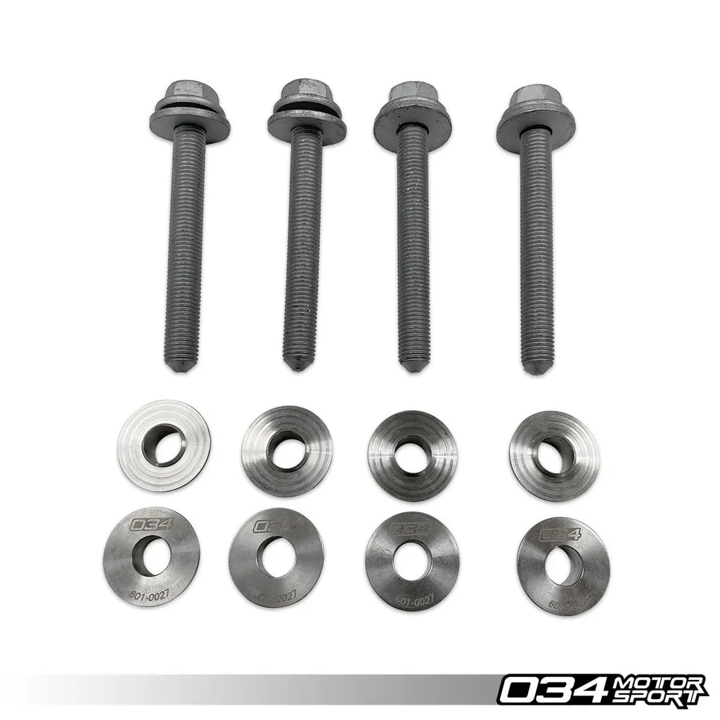 Ten 034 Zestaw modernizacyjny MQB Motorsport do blokady przedniej ramy pomocniczej zapewnia kompletne i skuteczne rozwiązanie eliminujące przesuwanie się ramy pomocniczej i poprawiające ogólną sztywność podwozia Volkswagen MkVII Golf / GTI / RTen precyzyjnie obrobiony ze stali nierdzewnej zestaw kołnierzy został zaprojektowany specjalnie do centrowania ramy pomocniczej pojazdu, zapobiegając niepożądanym ruchom ramy pomocniczej, a jednocześnie zapewniając bardziej bezpośrednie i responsywne prowadzenie. To nie tylko poprawia prowadzenie, ale także komfort jazdy. Zestaw składa się z ośmiu precyzyjnie obrobionych kołnierzy ramy pomocniczej ze stali nierdzewnej i czterech nowych śrub fabrycznych, które można łatwo zamontować w ramie pomocniczej bez konieczności dokonywania żadnych trwałych modyfikacji konstrukcyjnych. Dzięki temu montaż jest szybki i łatwy; cały proces modernizacji można ukończyć w około godzinę. Kolejną kluczową zaletą tego zestawu jest to, że skutecznie eliminuje on typowe odgłosy stukania ramy pomocniczej, które często występują podczas wolnej jazdy, pokonywania zakrętów lub zatrzymywania się i ruszania. Odgłosy te są spowodowane niewielkimi ruchami ramy pomocniczej, które teraz są całkowicie wyeliminowane dzięki precyzyjnemu dopasowaniu kołnierzy blokujących 034 Zestaw modernizacyjny MQB Motorsport do blokady przedniej ramy pomocniczej Wykonane z wysokiej jakości stali nierdzewnej dla maksymalnej trwałości i wydajności. W przeciwieństwie do zestawów wykorzystujących bardziej miękkie materiały, solidna konstrukcja ze stali nierdzewnej gwarantuje, że kołnierze nie odkształcą się i będą służyć przez całe życie. To ulepszenie zwiększa stabilność ramy pomocniczej bez wzrostu hałasu, wibracji i szorstkości w kabinie, co przekłada się na cichszą i bardziej komfortową jazdę.