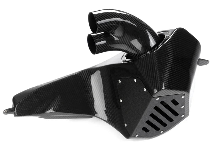 Ten Układ dolotowy z włókna węglowego IE dla Audi C7/C7.5 RS7 został zaprojektowany z myślą o maksymalnej wydajności, precyzyjnym dopasowaniu i niezrównanym stylu. Wykonany z błyszczącego włókna węglowego, ten wlot powietrza zapewnia natychmiastową moc, zwiększony przepływ powietrza i uzależniający dźwięk silnika. Podnieś poziom wrażeń z jazdy dzięki temu starannie zaprojektowanemu systemowi, idealnemu dla entuzjastów poszukujących zarówno formy, jak i funkcjonalności Układ dolotowy z włókna węglowego IE dla Audi C7/C7.5 RS7 został specjalnie opracowany, aby podnieść zarówno osiągi, jak i estetykę. Wykonany z prawdziwego włókna węglowego o wysokim połysku, system oferuje znaczną poprawę przepływu powietrza, momentu obrotowego i mocy. Jego zaawansowana konstrukcja zwiększa przepływ powietrza o 23,5% w porównaniu ze standardowym wlotem powietrza, co przekłada się na natychmiastowy wzrost mocy i bardziej dynamiczną jazdę. Ten układ dolotowy został zaprojektowany z zoptymalizowanym pod kątem przepływu kolektorem ssącym, który płynnie kieruje strumień powietrza z 5,5-calowego plisowanego filtra bawełnianego do rur dolotowych. Zmniejsza to zawirowania i opór powietrza, znacząco poprawiając osiągi silnika. System zawiera podwójną rurę dolotową z włókna węglowego, zintegrowany kolektor ssący z włókna węglowego oraz malowaną proszkowo aluminiową płytę podstawy, co zapewnia dodatkową trwałość i idealne dopasowanie. Dzięki zastosowaniu cyfrowego skanowania 3D komory silnika i innych elementów pojazdu, system integruje się bezproblemowo i oferuje łatwe w montażu, przykręcane rozwiązanie bez konieczności modyfikacji. Ponadto oferuje Układ dolotowy z włókna węglowego IE Wyjątkowy dźwięk silnika, który podkreśla głęboki ryk turbodoładowanego silnika V8. Pasuje do Audi RS7 (2014-2018), podwozie C7 i C7.5Ten układ dolotowy zapewnia kompleksową poprawę osiągów, optymalizując zarówno moc, jak i wrażenia z jazdy.