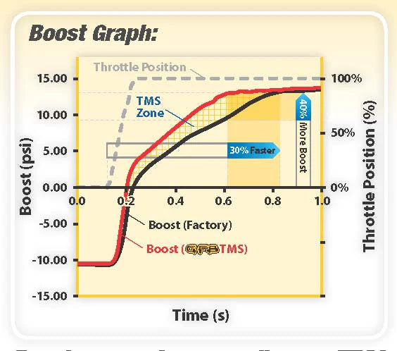 System GFB Deceptor Pro TMS oferuje elektroniczną, proporcjonalną kontrolę poziomu hałasu zaworu upustowego (BOV). Pozwala to na regulację poziomu hałasu upustu powietrza z turbosprężarki podczas jazdy, od cichego do głośnego. Technologia ta zapobiega problemom, takim jak cofanie się spalin i gaśnięcie silnika podczas odpowietrzania do atmosfery, i umożliwia regulację w celu ograniczenia maksymalnego współczynnika odpowietrzania.
