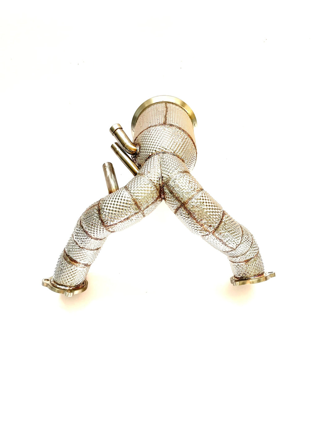 Ta rura spustowa ze stali nierdzewnej została opracowana dla Audi Q8 55 TFSI 3.0 V6 E-Hybrid i oferuje idealne dopasowanie OEM. Rura spustowa jest wyposażona w osłona termiczna i łączy się bezpośrednio z oryginalnym układem wydechowym, co sprawia, że montaż jest bezproblemowy i nasz 100% gwarancji dopasowania dotyczy.