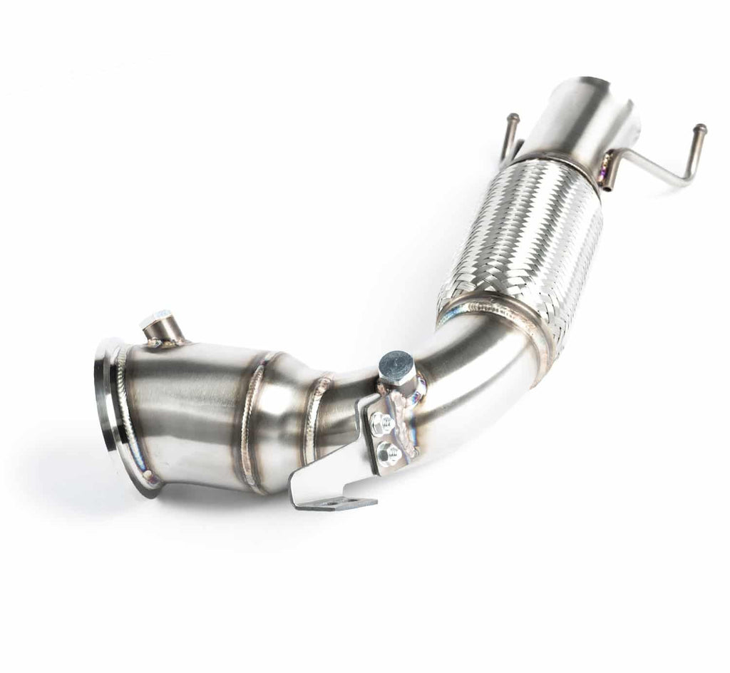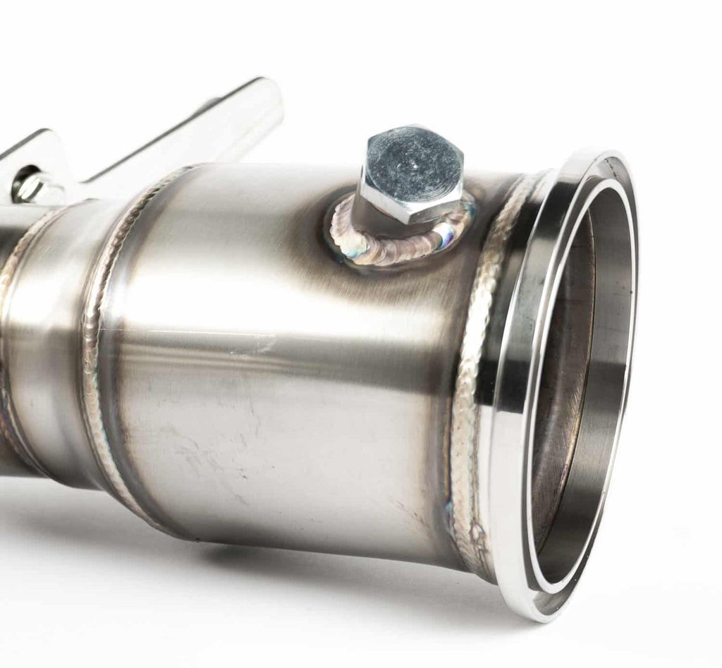 Downpipe CTS Turbo B46 do Mini Cooper S, BMW X1/X2 z 2015 roku i nowszych. Zwiększ osiągi swojego Mini lub BMW dzięki downpipe'owi CTS Turbo B46. Wykonany ze stali nierdzewnej i spawany metodą TIG, downpipe ten został zaprojektowany w celu zmniejszenia oporu spalin i zwiększenia mocy. Wyposażony w kołnierz V-Band CNC i rurę o średnicy 4 cali (10 cm), zapewnia maksymalny przepływ zarówno do fabrycznych, jak i zamiennych układów wydechowych.